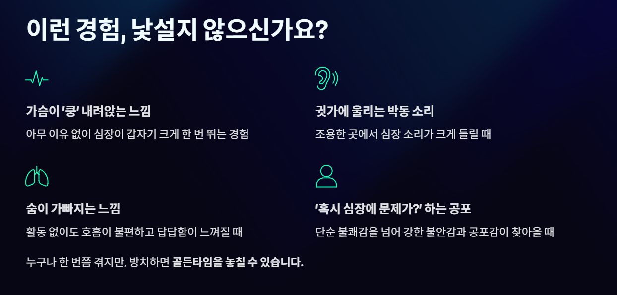 평온하던 일상 속, 갑자기 가슴이 '쿵' 하고 내려앉거나 심장이 불규칙하게 요동치는 경험을 해본 적이 있으신가요? 가만히 있어도 큰 심장 박동 소리가 귓가에 울리고 호흡이 가빠지는 이 증상은, 단순한 불쾌감을 넘어 '혹시 심장에 심각한 문제가 생긴 것은 아닐까?' 하는 강한 공포감과 이탈감을 조성합니다. 누구나 살면서 한 번쯤 겪는 가슴 두근거림(심계항진)이지만, 이를 일시적인 피로로 치부하고 방치하면 만성 질환의 골든타임을 놓칠 수 있습니다.