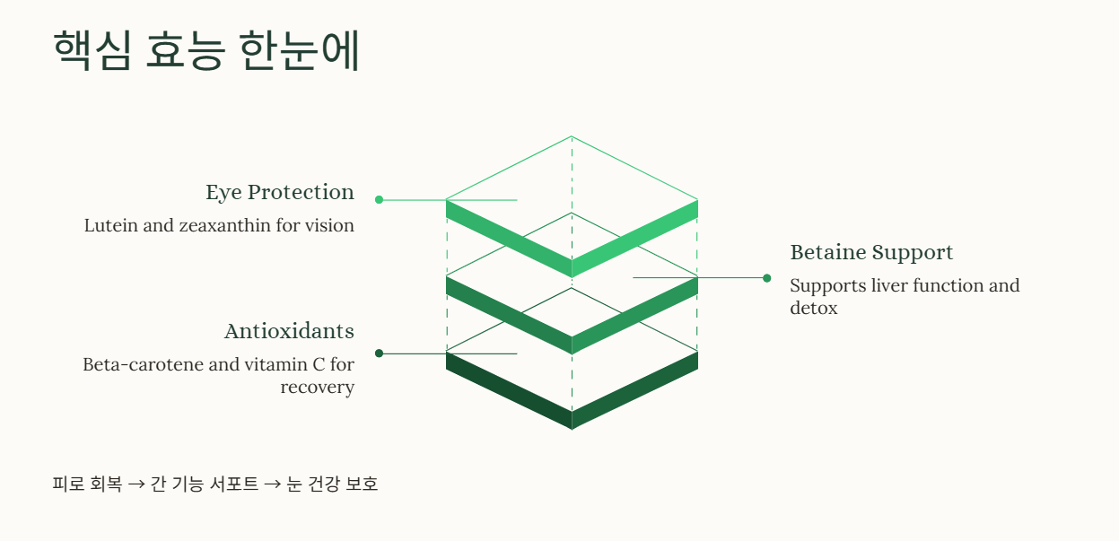 구기자차 끓이는법을 알기 전, 이것이 왜 우리 몸에 좋은지 이해하는 것이 중요합니다. 구기자에는 강력한 항산화 성분인 베타카로틴과 비타민C가 오렌지보다 풍부하게 함유되어 있어 세포 노화를 막고 피로를 회복하는 데 탁월합니다. 또한 핵심 성분인 '베타인(Betaine)'은 간에 지방이 축적되는 것을 억제하여 간 기능을 개선해 주며, '루테인'과 '지아잔틴'은 블루라이트에 시달리는 현대인의 시력을 보호하고 안구 건조증을 완화하는 데 직접적인 도움을 줍니다.