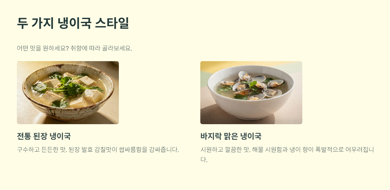 - 추천 대상: 익숙하고 깊은 고향의 맛을 원하는 분, 아침 식사로 든든한 국물이 필요한 분.