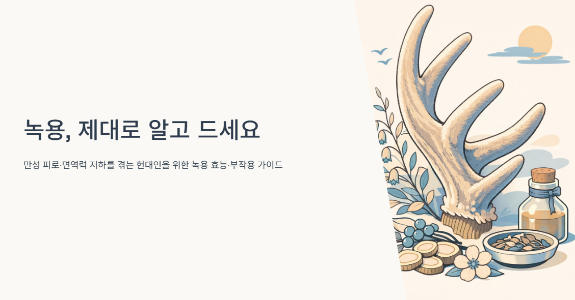 오늘은 녹용의 진짜 효능과 주의해야 할 부작용을 살펴보고 내 몸에 맞게 똑똑하게 활용하여 피로를 해결하는 방법을 안내해 드리겠습니다.