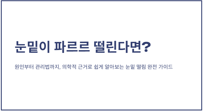 갑작스럽게 나타나는 눈밑 떨림은 대부분 심각한 질환이라기보다 피로와 스트레스가 누적되었을 때 나타나는 신호일 가능성이 큽니다.