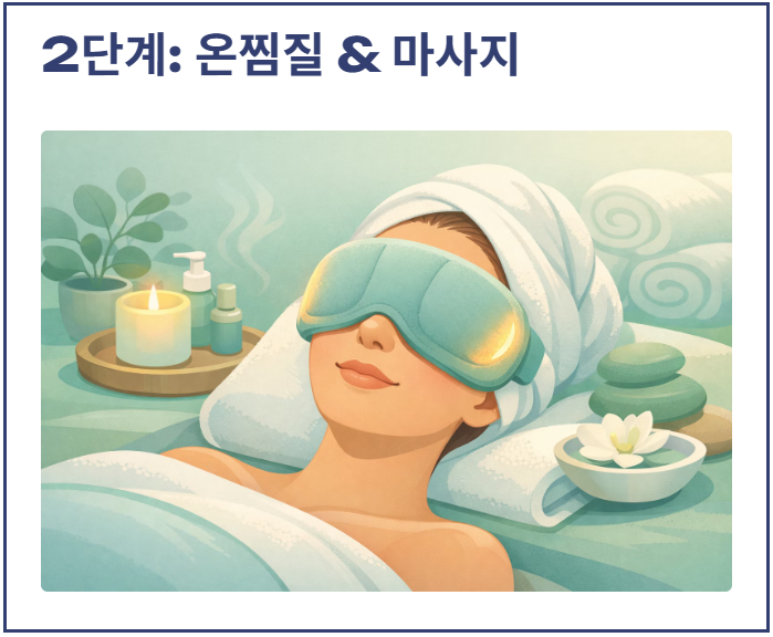 2단계: 온찜질과 눈 주변 마사지