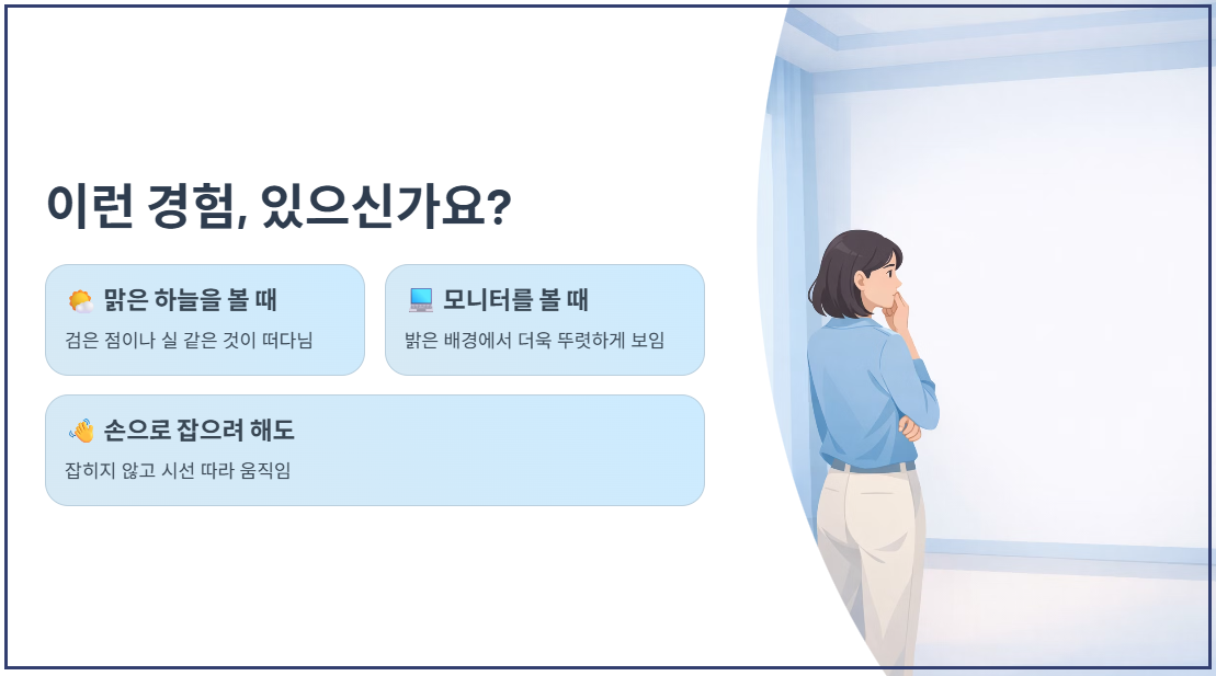 손으로 휘저어도 잡히지 않고, 시선을 돌릴 때마다 따라다니는 이 현상 때문에