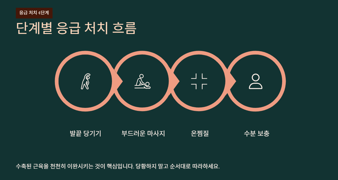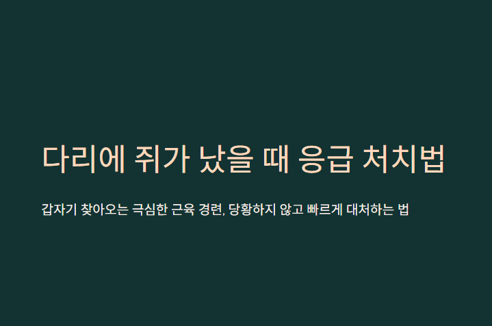다리에 쥐가 났을 때 잘못된 방법으로 근육을 건드리면 오히려 통증이 악화되거나 근육이 손상될 수 있습니다. 오늘은 극심한 고통에서 빠르게 벗어날 수 있는 단계별 응급 처치법과 원인, 그리고 예방법까지 상세히 알아보겠습니다.