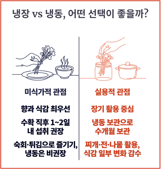 두릅 보관 방법 비교 (냉장 vs 냉동, 어떤 선택이 좋을까?)