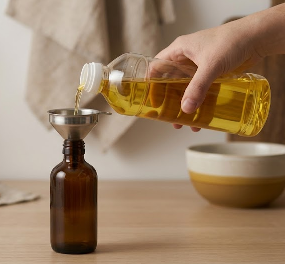 구입 후에는 가능한 한 빨리 열탕 소독한 뒤 완전히 건조된 짙은 색 유리병(갈색 또는 녹색)으로 옮겨 담는 것이 좋습니다. 유리병은 플라스틱보다 냄새가 배지 않고, 외부 공기 투과도 적어 들기름 보관에 훨씬 안정적입니다.