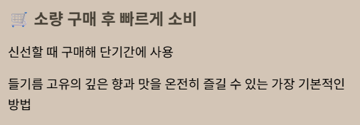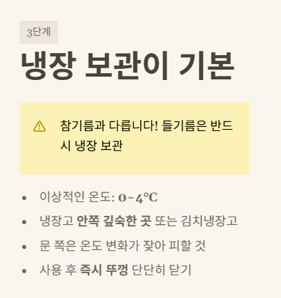 들기름 보관 방법의 핵심 내용을 정리하면 다음과 같습니다.