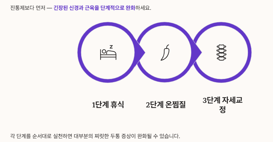 - 2단계: 뒷목과 어깨 부위 온찜질 및 가벼운 마사지