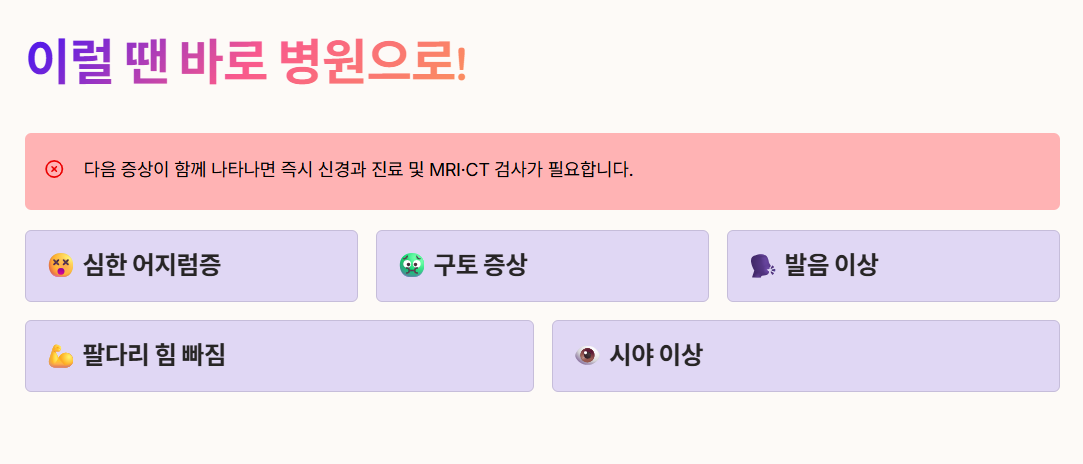 이러한 경우에는 신경과 진료 및 영상 검사(MRI, CT 등)를 통해 정확한 확인이 필요할 수 있습니다.