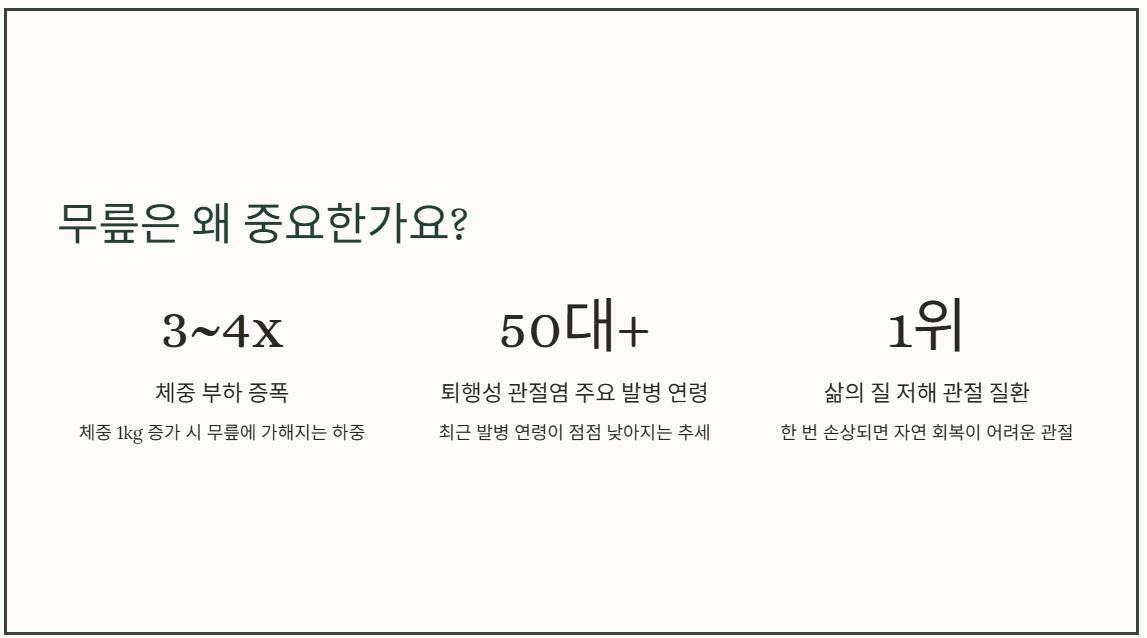 무릎통증은 단순한 노화 현상이 아니라, 구조적인 손상(연골, 인대 질환 등)과 환경적인 요인(비만, 나쁜 자세, 근력 부족 등)이 복합적으로 작용하여 발생하는 결과입니다.