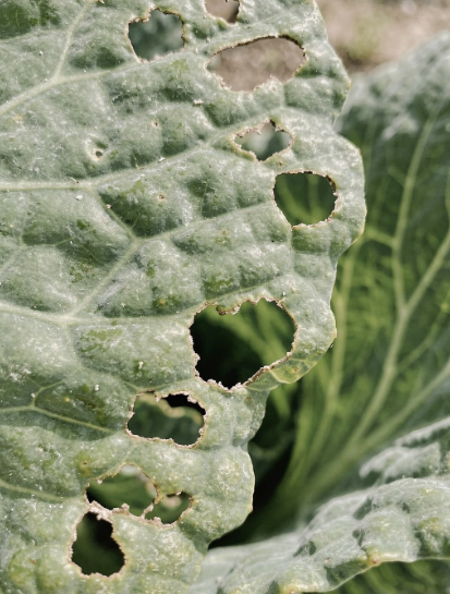 배추흰나비의 애벌레인 배추 벌레는 부드러운 배추 속잎을 갉아먹으며 빠르게 성장합니다. 번식 속도가 빨라 초기에 잡지 않으면 밭 전체로 퍼질 수 있습니다.