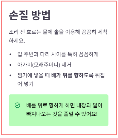 이렇게 하면 조리 과정에서 내장과 알이 빠져나오는 것을 줄일 수 있습니다.