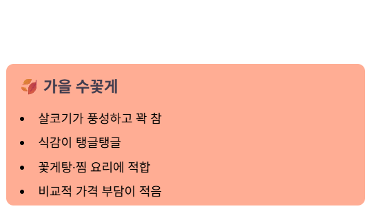 반면, 풍성한 살코기를 중요하게 생각한다면 가을 꽃게가 더 적합할 수 있습니다.
