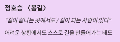 "길이 끝나는 곳에서도 / 길이 되는 사람이 있다"
