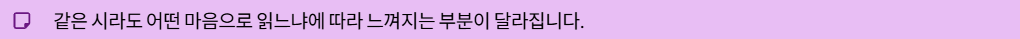 같은 시라도 어떤 마음으로 읽느냐에 따라 느껴지는 부분이 달라질 수 있습니다.