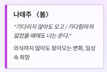 - 1단계 깨우기: 나태주, 이해인, 조병화의 시로 봄의 생동감과 설렘 느끼기