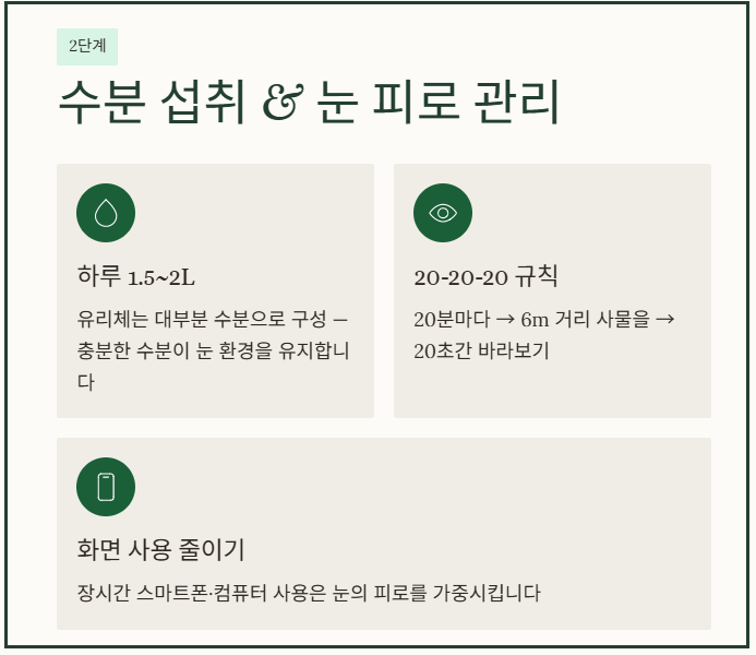 2단계: 충분한 수분 섭취와 눈 피로 관리