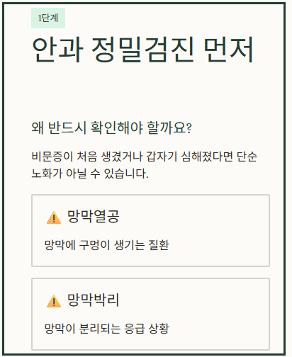 1단계: 안과 정밀검진으로 망막 질환 여부 확인