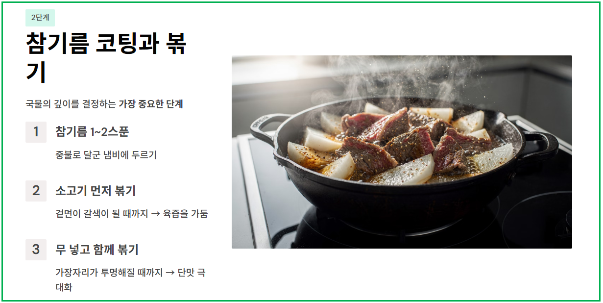 소고기무국은 볶고, 끓이고, 불순물을 제거하는 타이밍이 맛을 좌우합니다. 그리고 값비싼 재료나 복잡한 과정 없이, 조리 순서와 불 조절, 그리고 약간의 팁만 알면 누구나 완벽한 국물을 낼 수 있습니다. 아래 4단계를 순서대로 따라 해 보세요.