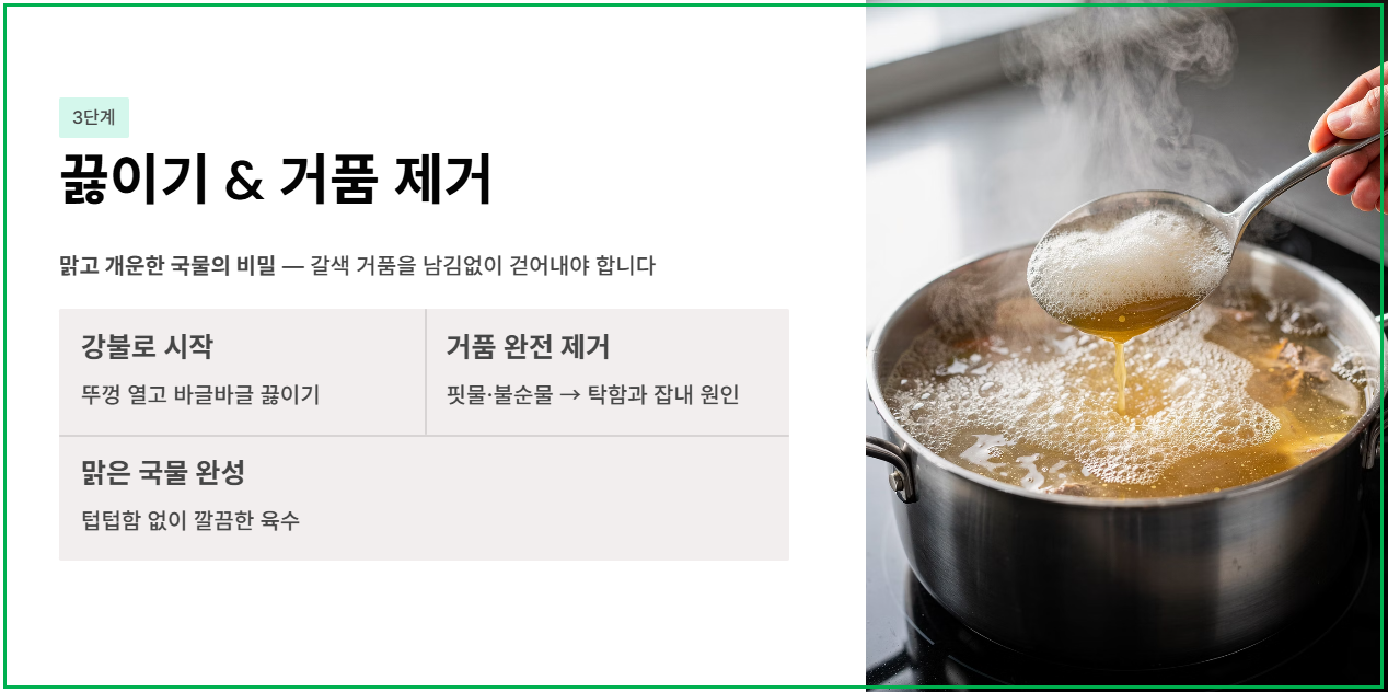 3단계: 끓이기 및 꼼꼼한 거품 제거 (깔끔한 국물의 비밀)