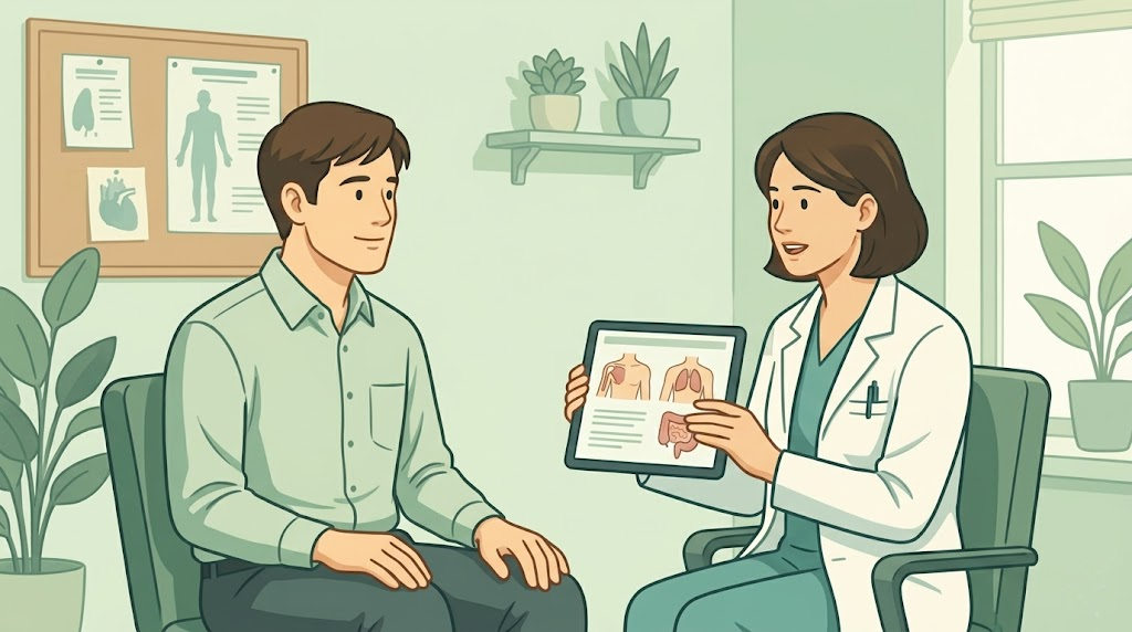 자세 교정과 운동을 한 달 이상 지속했음에도 특정 위치(오른쪽 또는 왼쪽)의 통증이 전혀 호전되지 않거나 소화불량, 피로감 등이 동반된다면 주저하지 말고 병원을 방문해야 합니다. 내과나 신경외과를 찾아 초음파 검사 등을 통해 연관통 여부를 확인하세요.