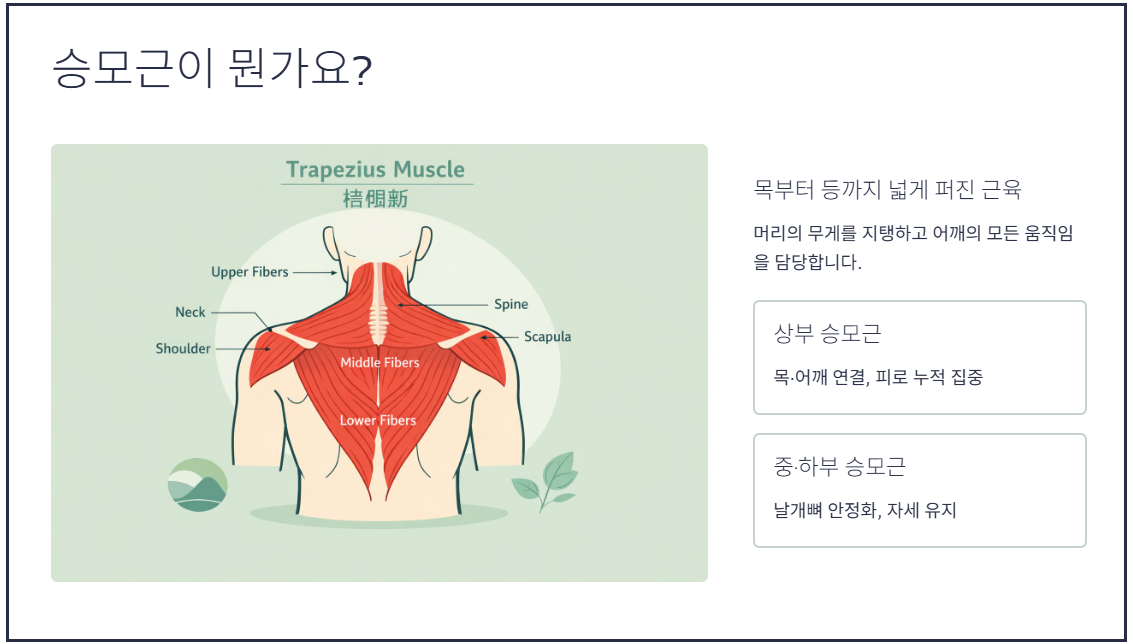 오늘은 평소에 알기 어려웠던 좌우 승모근 통증의 원인과 해결방법을 단계별로 자세히 알아보겠습니다.