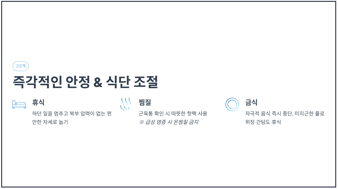2단계: 즉각적인 안정 취하기 및 식단 조절
