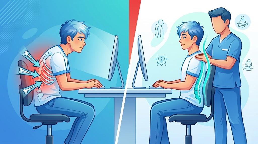 반면, 뼈와 근육, 신경을 다루는 전문의들은 환자의 '자세와 움직임'에 주목합니다. 장시간 앉아 모니터를 보는 현대인들은 굽은 등과 척추 불균형으로 인해 갈비뼈 주변 근육과 늑간 신경이 지속적인 압박을 받습니다. 이로 인해 내장 장기에는 아무 이상이 없는데도 마치 장기가 아픈 것처럼 느껴지는 '가짜 내장통(체성 신경통)'을 겪는 경우가 매우 많습니다. 이 관점에서는 자세 교정, 코어 근육 강화, 도수 치료 및 물리치료가 통증을 줄이는 가장 효과적인 방법으로 꼽힙니다.