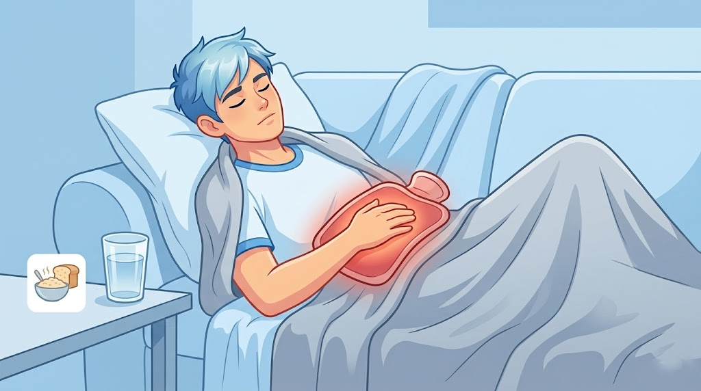 - 금식: 소화기나 담낭 문제일 수 있으므로, 자극적인 음식 섭취를 즉각 중단하고 미지근한 물을 마시며 위장과 간담도를 쉬게 해 줍니다.
