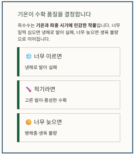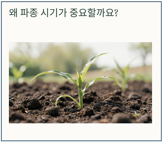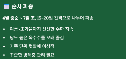 1. 옥수수 심는시기 조기 파종 전략 (태풍·병해충 회피형)