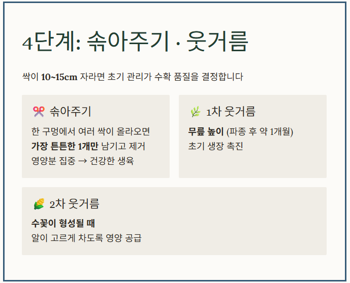 4단계: 솎아주기와 타이밍 맞춘 웃거름 주기