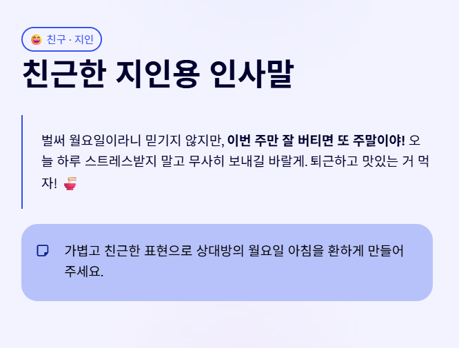 [지인 및 친구용 (가볍고 친근한 월요일 인사)]