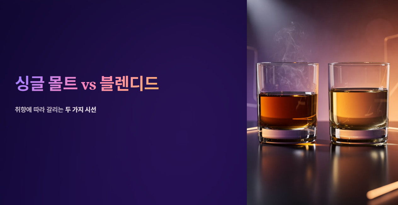 위스키 애호가들 사이에서는 종종 어떤 종류의 위스키가 더 우월한가를 두고 흥미로운 논쟁이 벌어집니다. 가장 대비되는 '싱글 몰트'와 '블렌디드'에 대한 두 가지 관점을 비교해 봅니다.