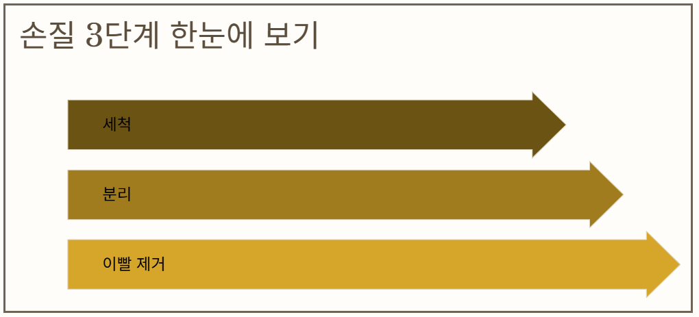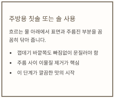 1단계: 전용 칫솔로 구석구석 때 벗기기 (세척)
