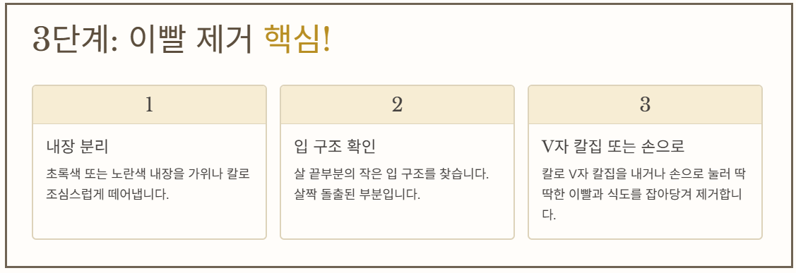 3단계: 내장 분리 및 이빨 제거 (핵심 단계)
