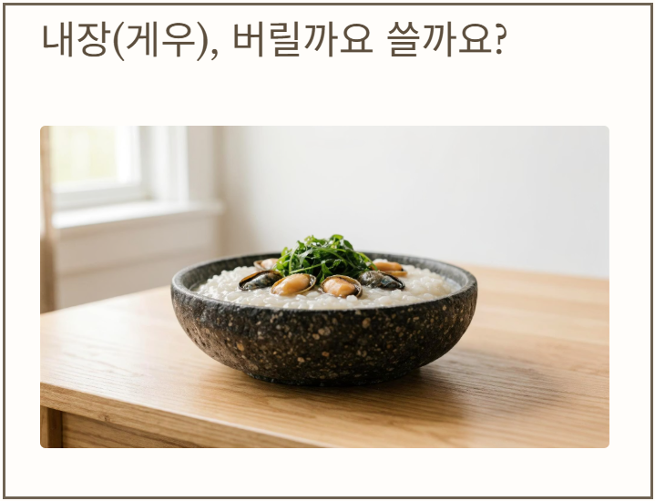 전복 손질 후 남은 내장(게우)은 활용 방법에 따라 요리의 맛과 방향이 달라집니다. 일반적으로는 두 가지 활용 관점으로 나누어 볼 수 있습니다.