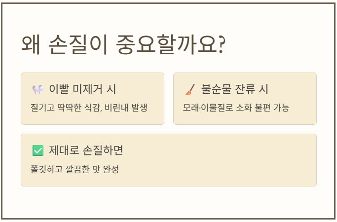 또한 손질 과정에서 모래나 불순물이 남아 있을 수 있어 제대로 제거하지 않으면 소화에 불편을 줄 가능성도 있습니다.