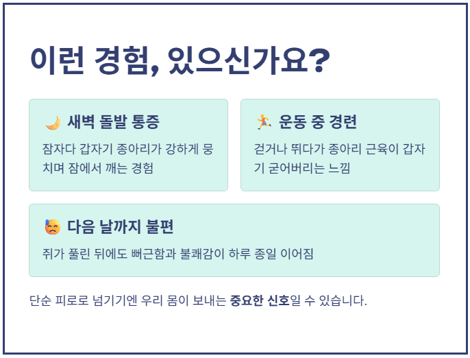 종아리 쥐나는 이유와 해결 방법을 함께 이해해야 재발을 막을 수 있습니다.