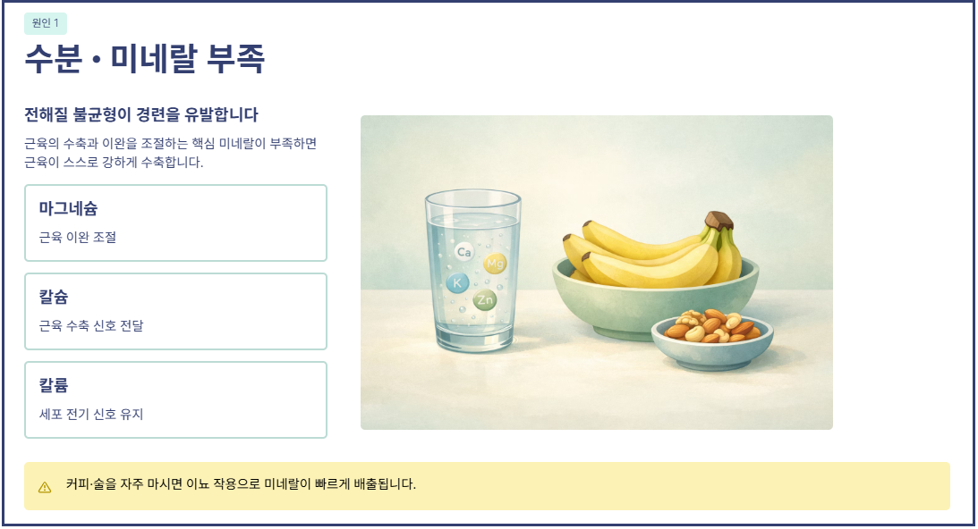 수분 부족, 근육 피로, 혈액순환 문제 등 우리 몸의 상태를 알려주는 중요한 신호일 수 있습니다.