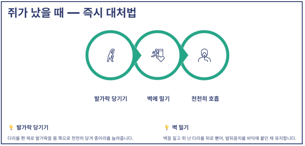 종아리 쥐 해결 방법, 이 순서대로 하면 바로 풀립니다