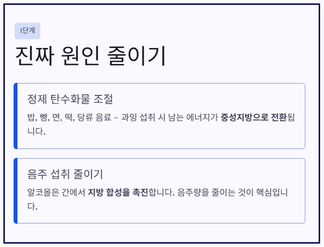 1단계: 원인 줄이기 (정제 탄수화물과 음주 조절)