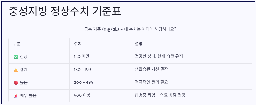 중성지방 정상수치 기준표|내 수치는 안전할까?