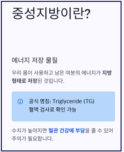 중성지방 수치가 높아지면 혈관 건강에 부담을 줄 수 있어 주의가 필요합니다.
