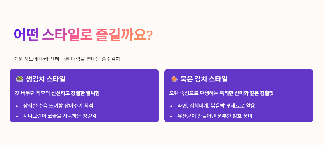 홍갓김치의 매력과 맛의 취향 두가지